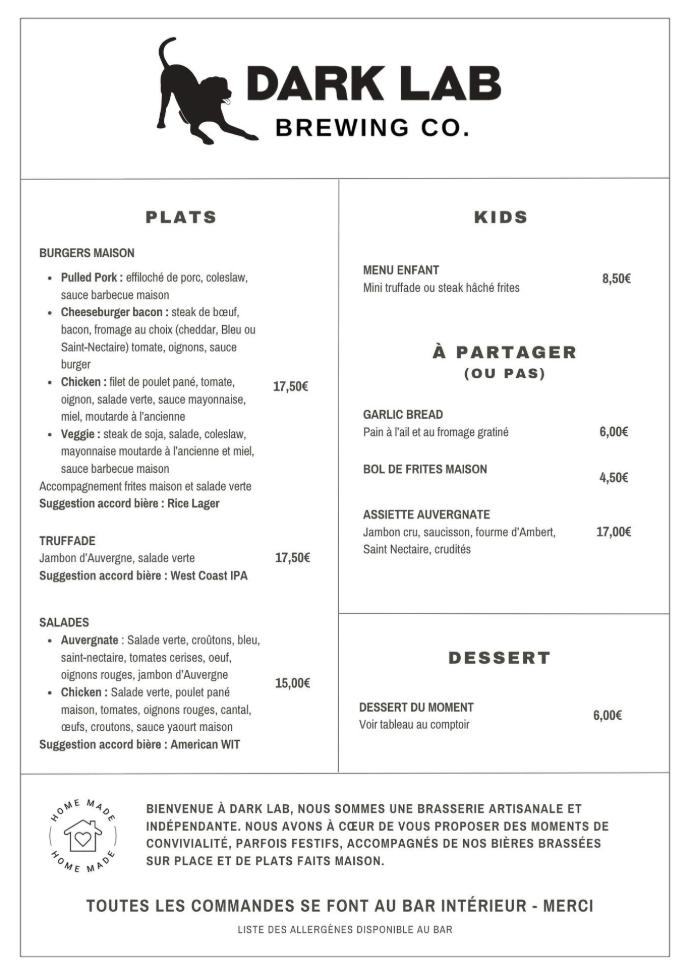 BREWPUB DARK LAB, RESTAURATION FAITE MAISON