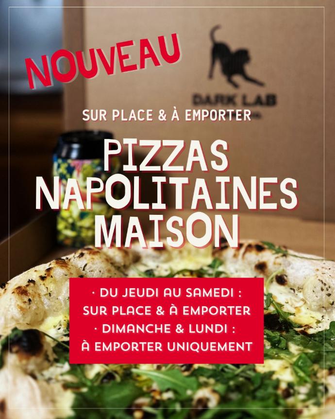 Pizzas disponibles à emporter les dimanches et lundis soirs (brewpub fermé).